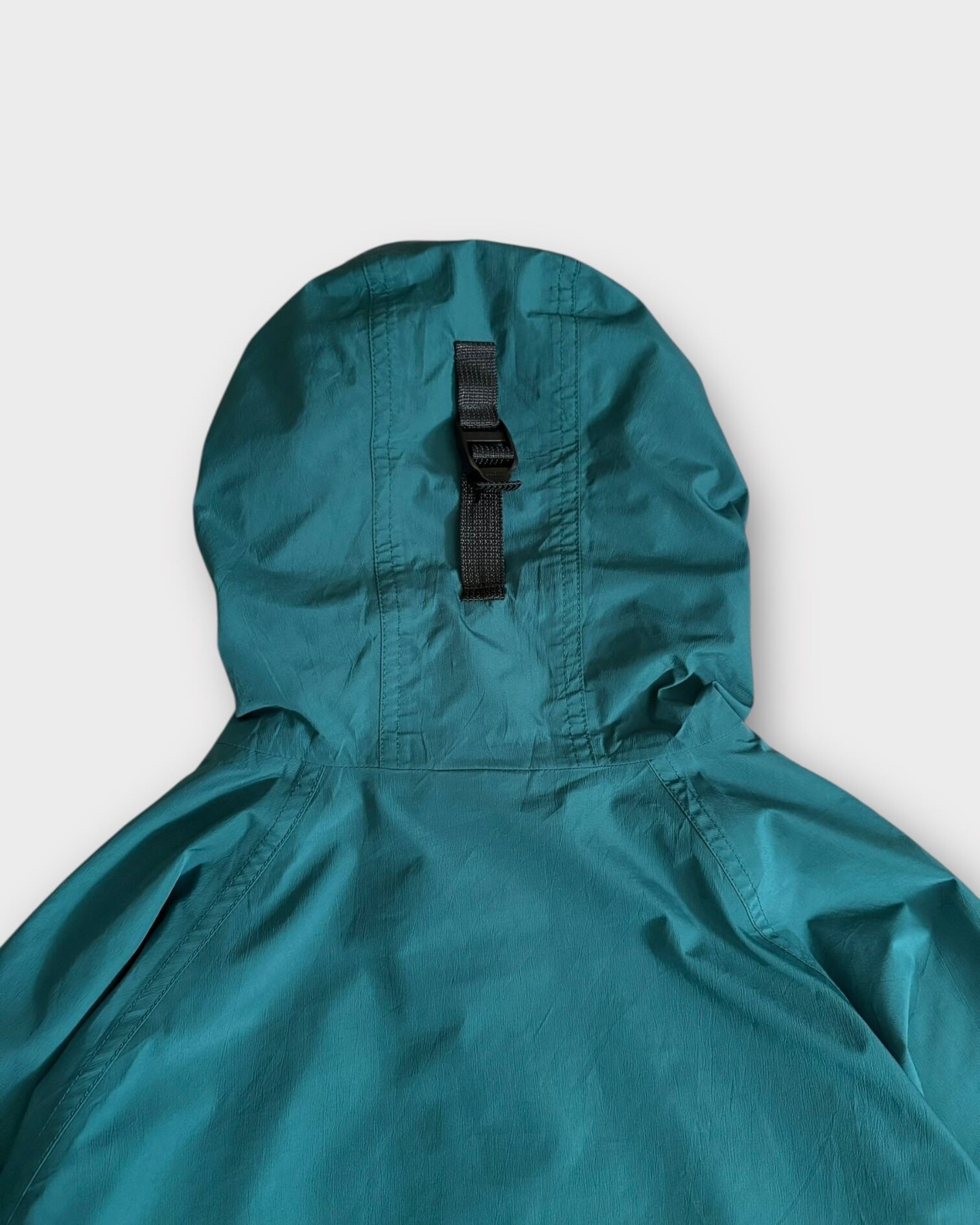 淡いブルーグリーンカラーのマウンテンパーカー。