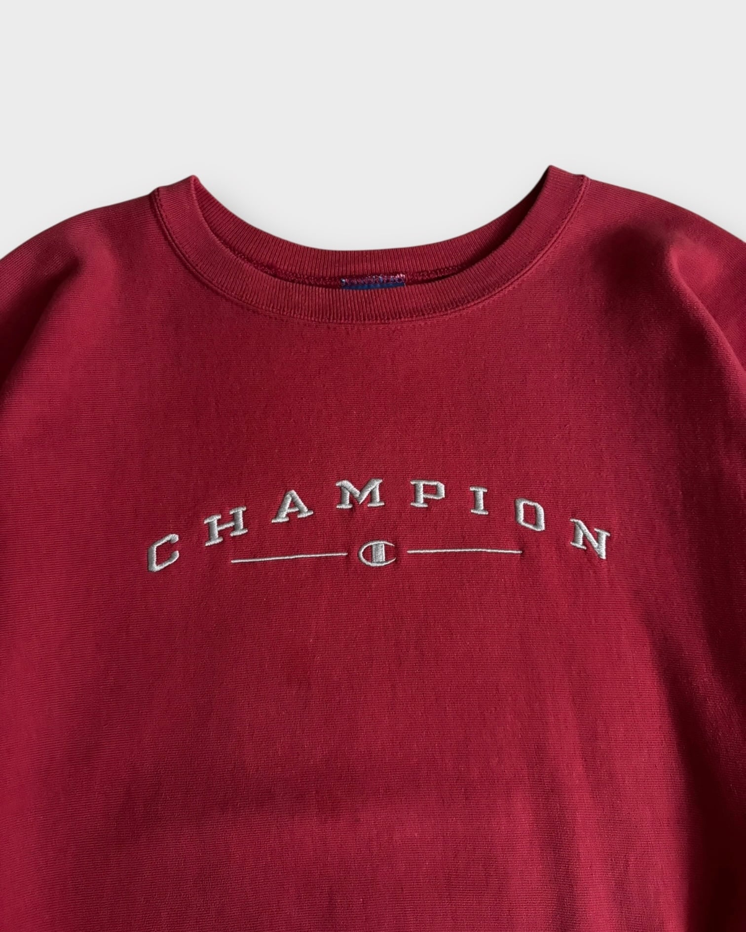 アーチ状のチャンピオン刺繍の下に