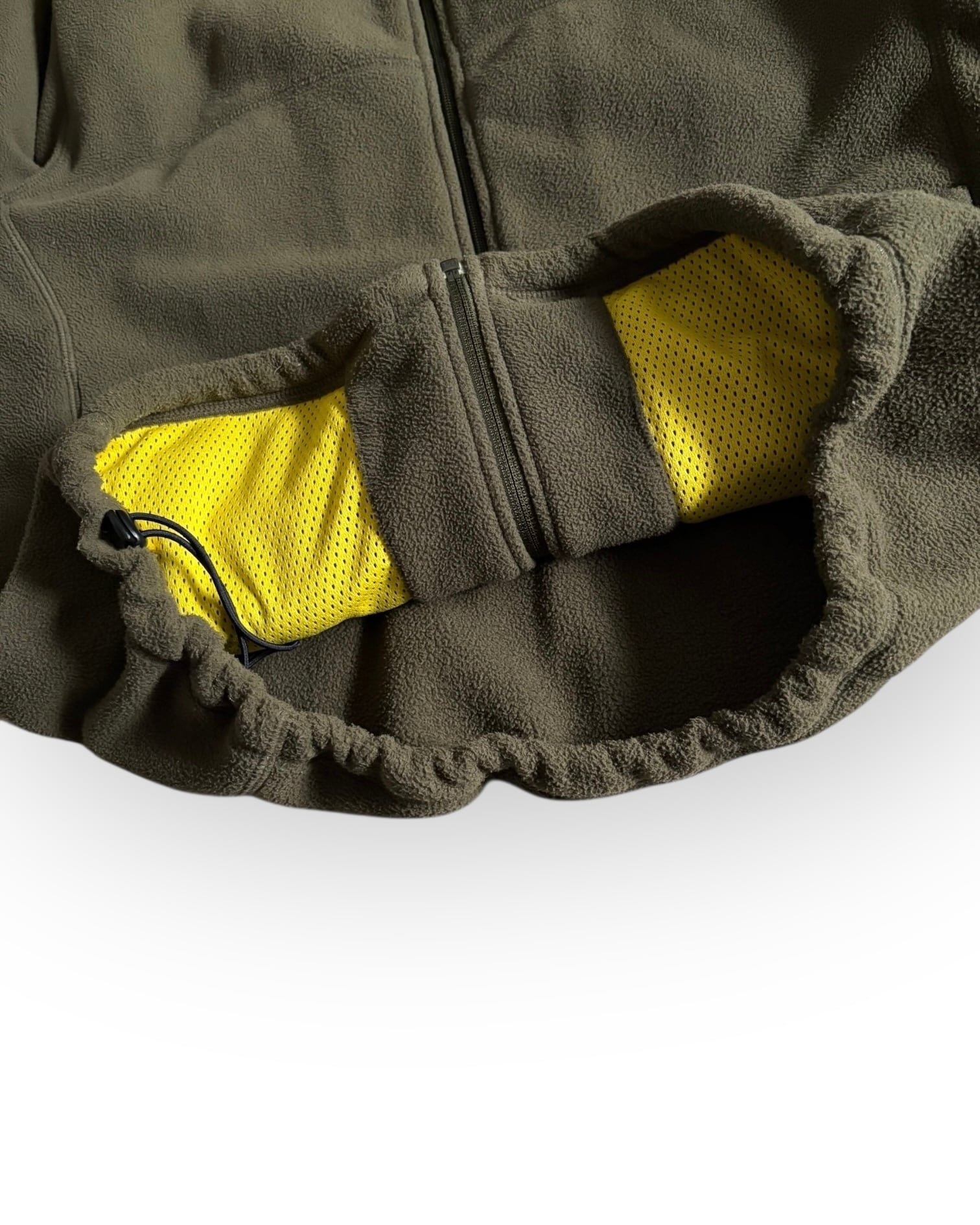 カーキボディに裏地のイエローカラーが
