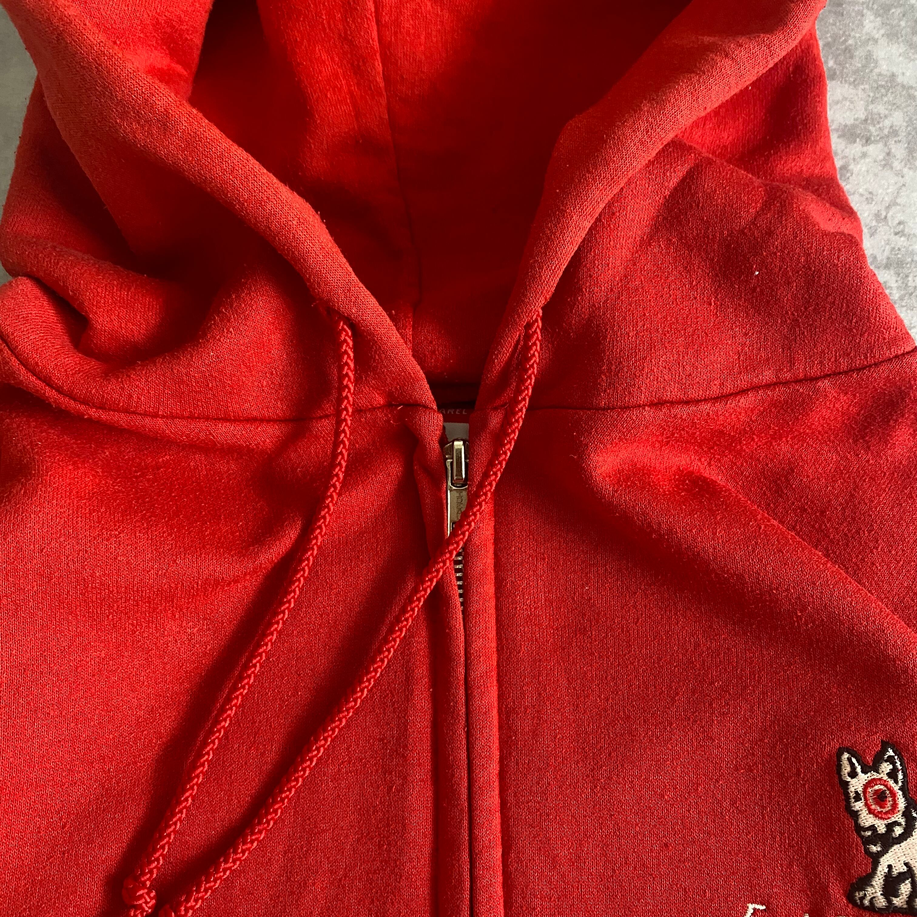 胸元にクセの強い犬が刺繍されています。