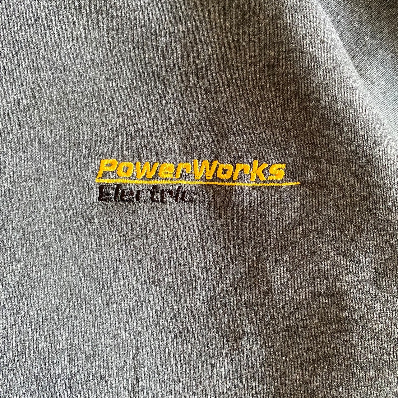 胸元にイエロー×ブラックの企業刺繍が